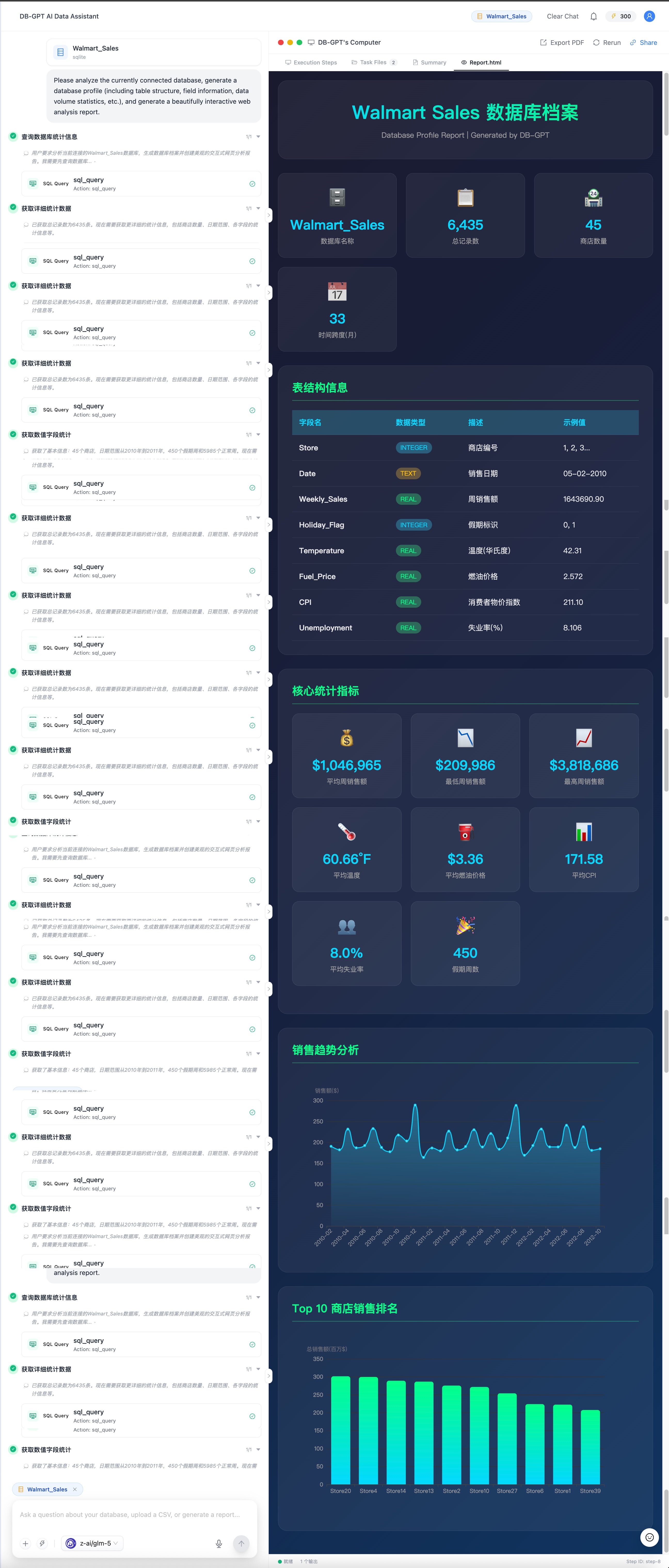 Built on the new Agentic architecture, the engine autonomously performs data diagnostics, feature extraction, and multi-dimensional analysis, generating dedicated analysis reports with beautiful charts and deep insights â making data value crystal clear.