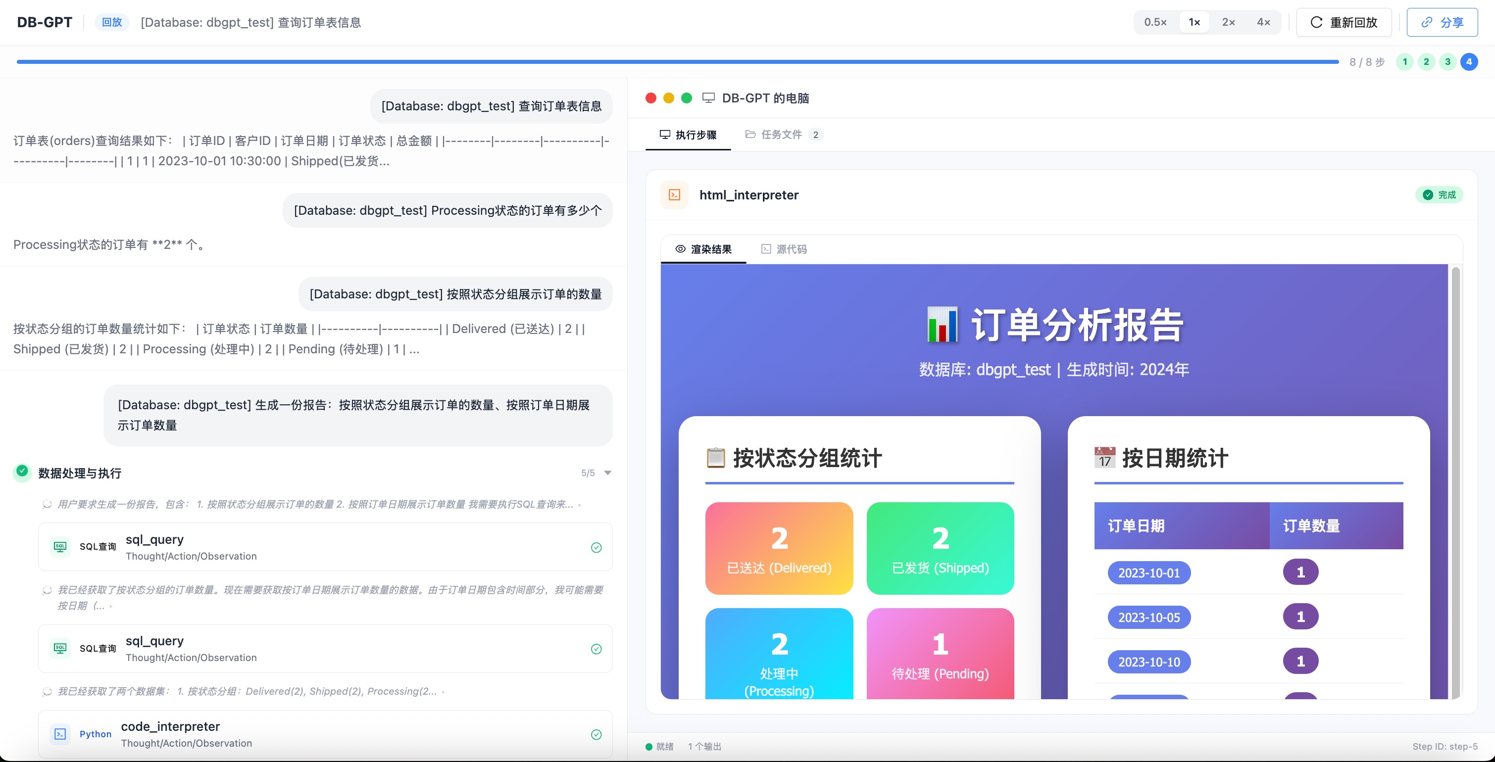 DB-GPT V0.8.0 introduces a self-driven AI Data Assistant that autonomously handles the entire analytics pipeline: