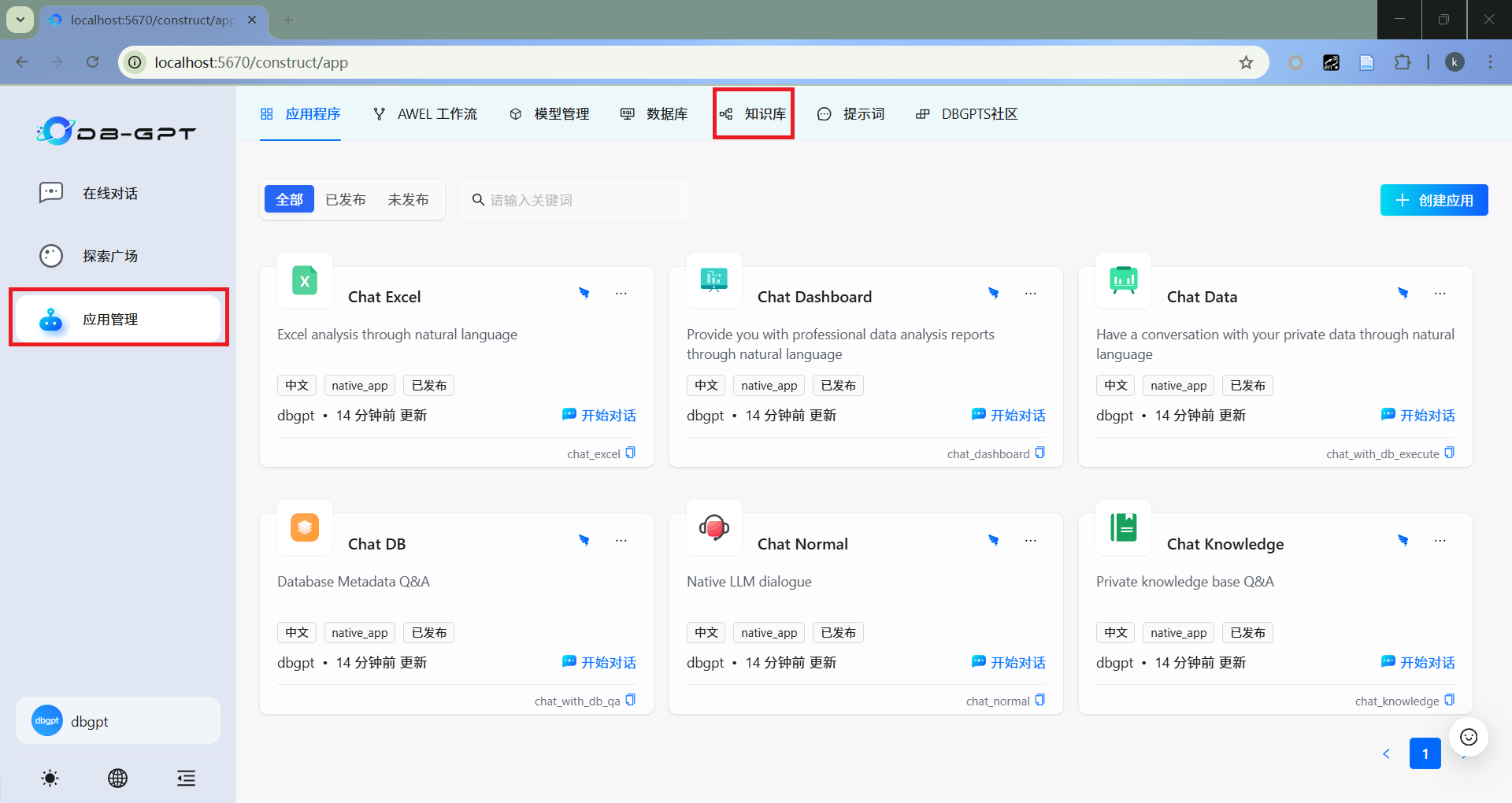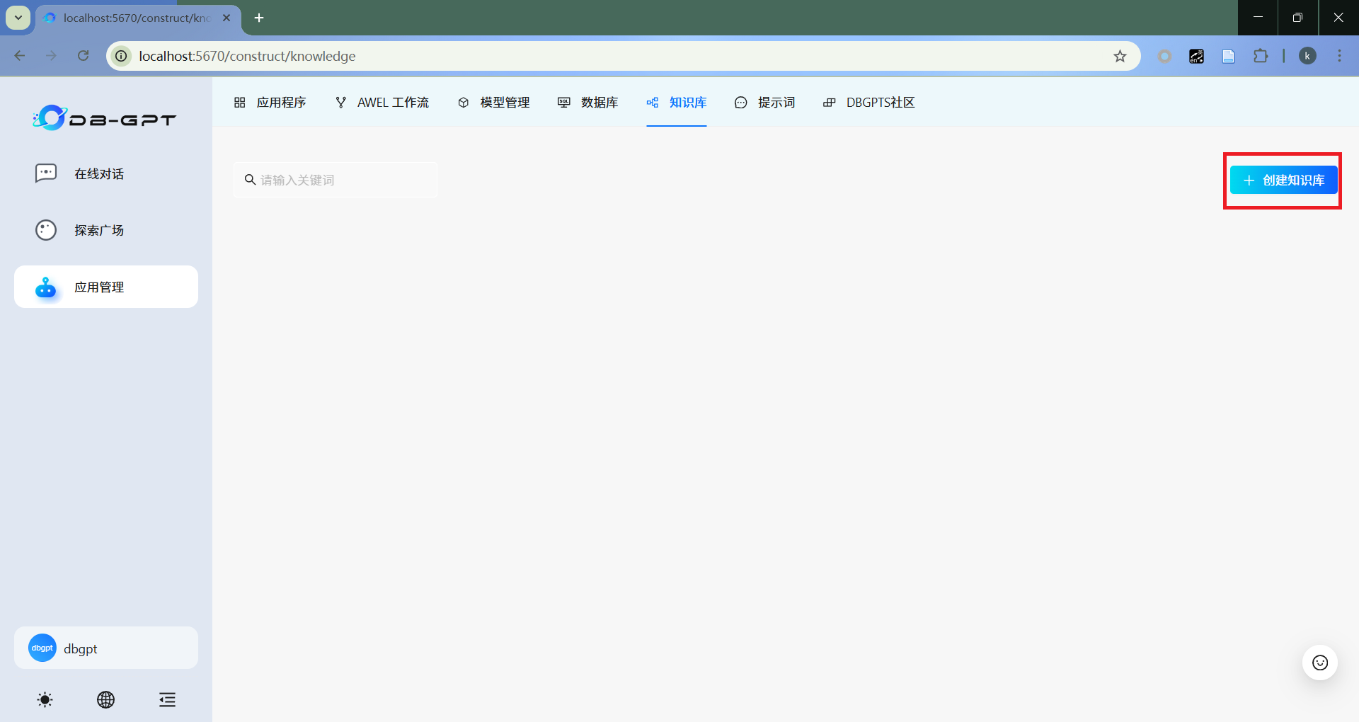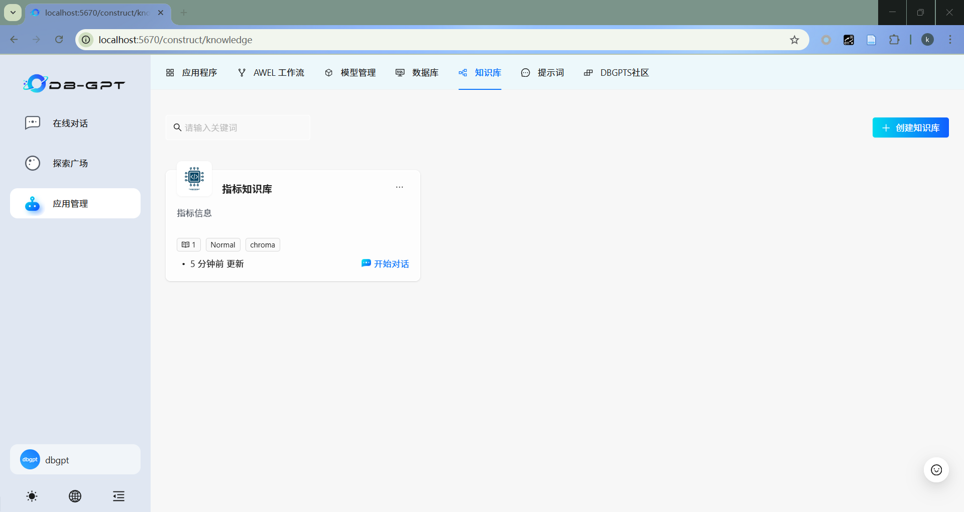 点击“应用管理”,选择“知识库”