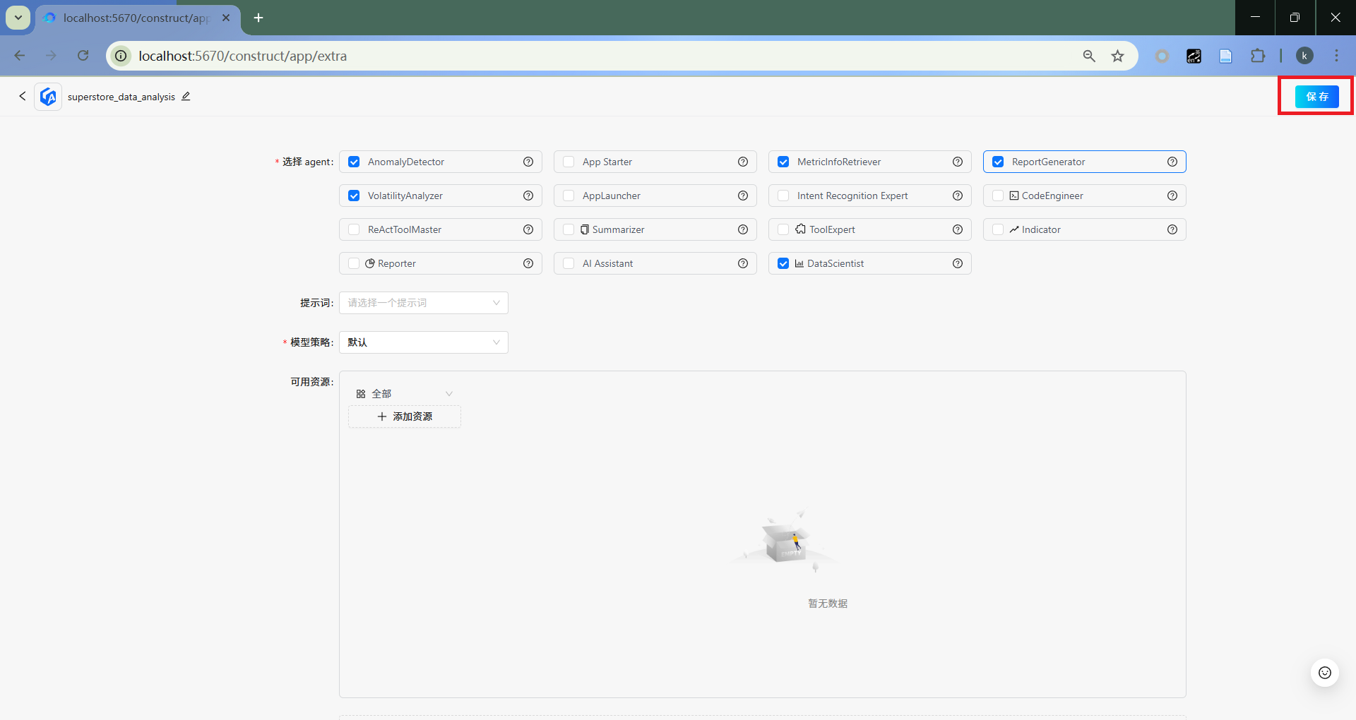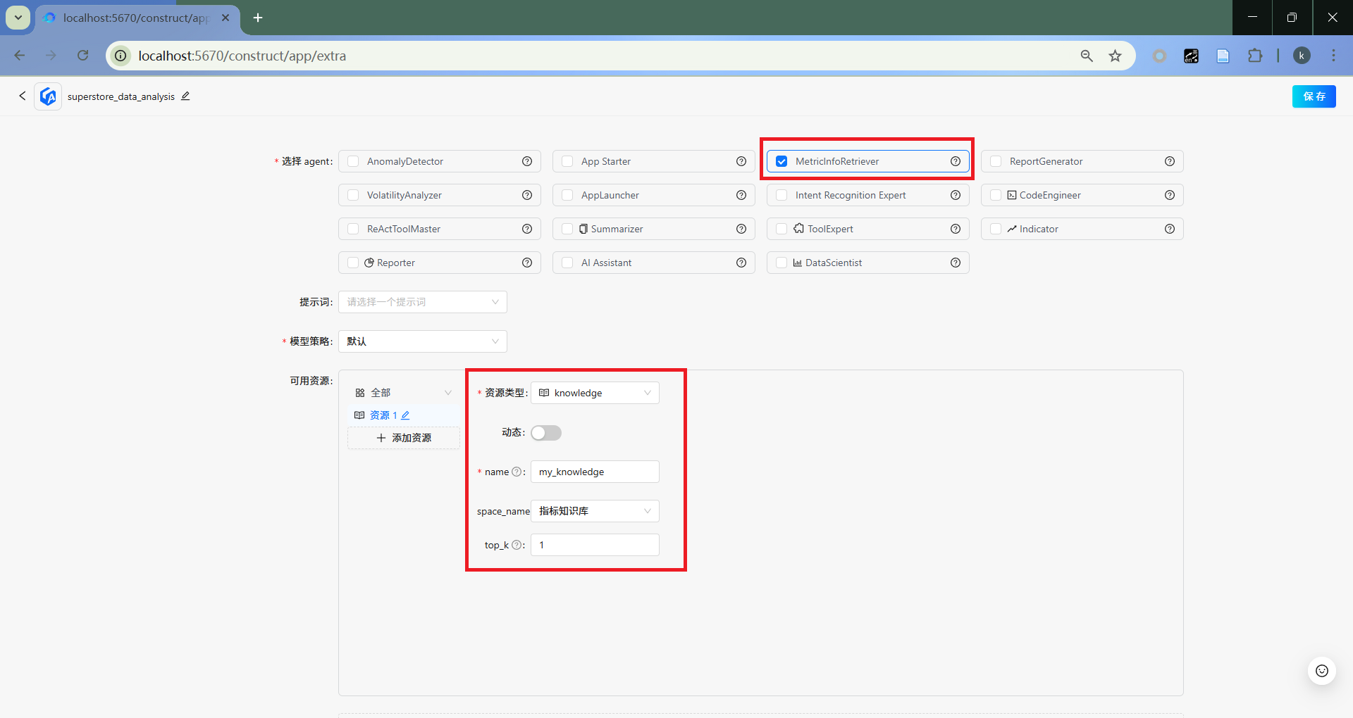 选取MetricInfoRetriever,并配置知识库资源。