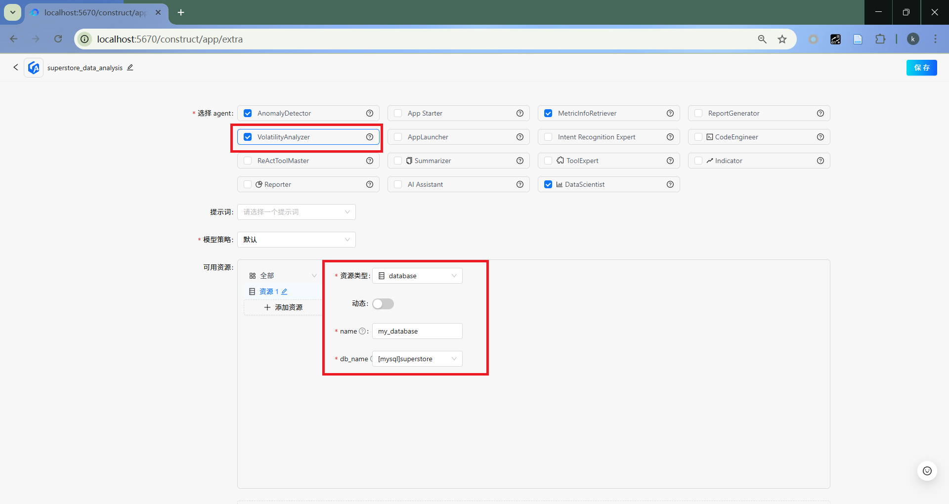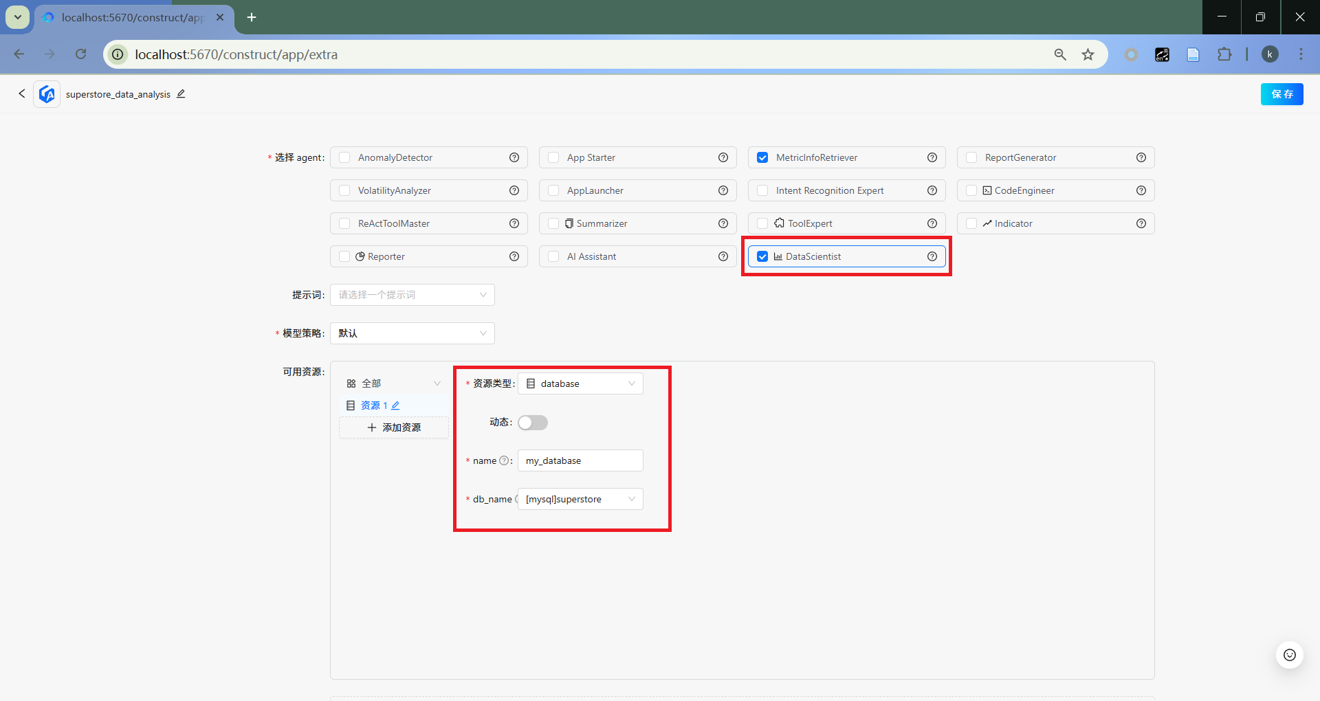 选取DataScientist,并配置数据库资源。